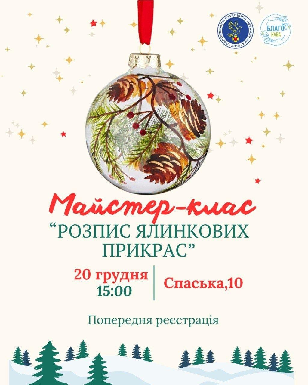 15.00 – Майстер-клас «Розпис ялинкових прикрас», вулиця Спаська, 10