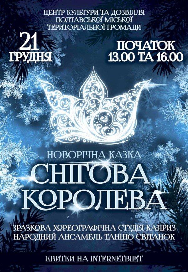 13:00, 16:00 – Новорічна казка «Снігова королева» в Центрі культури і дозвілля