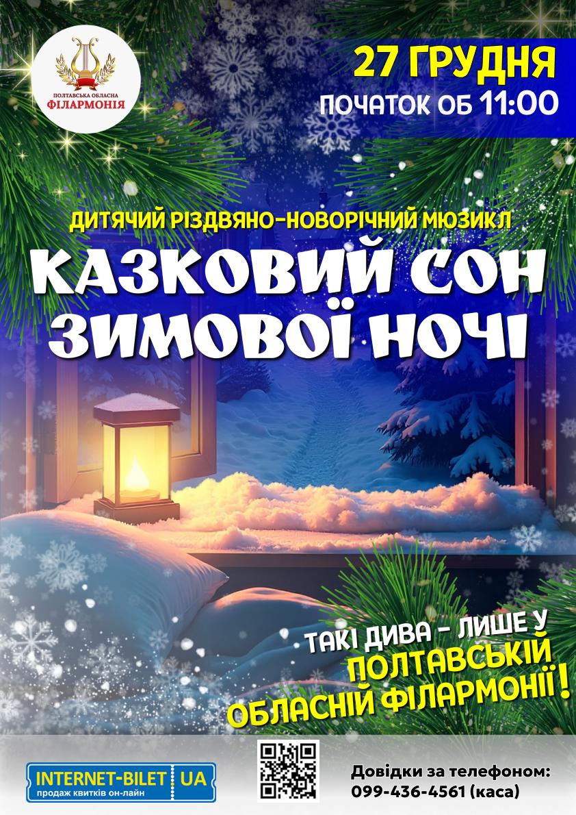 11.00 – різдвяно-новорічний дитячий мюзикл від колективу Полтавської обласної філармонії «Казковий сон зимової ночі»