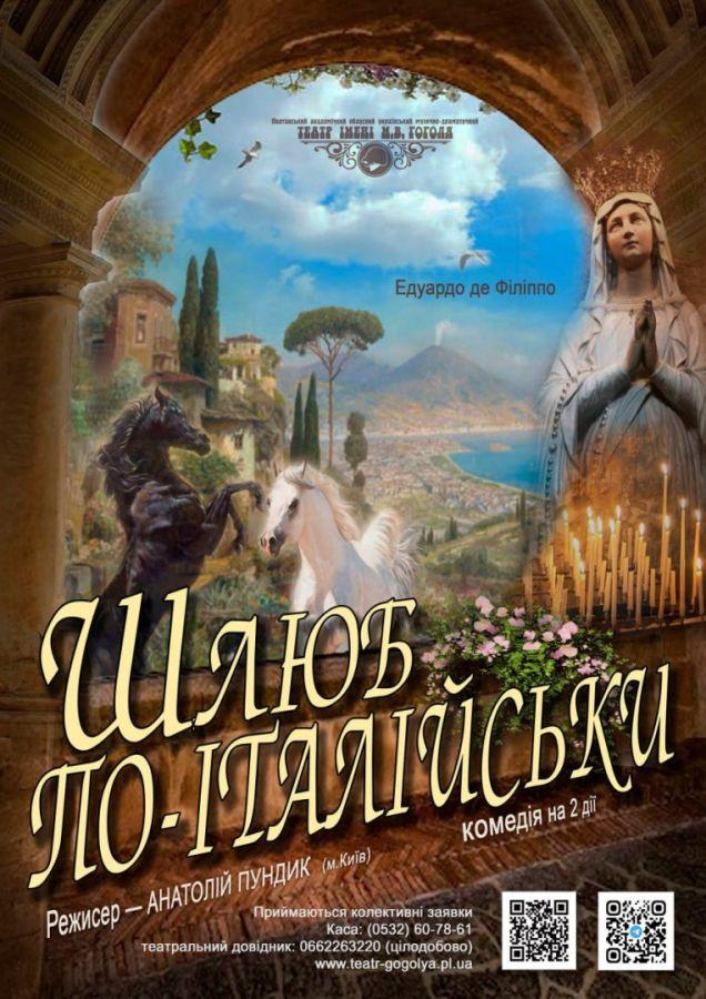 17.00 – вистава «Шлюб по-італійськи» в Полтавському академічному музично-драматичному театрі імені М.В. Гоголя