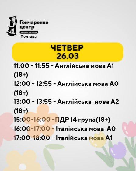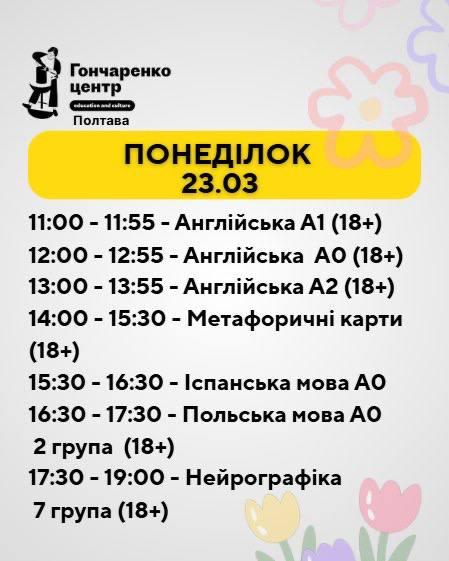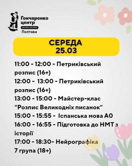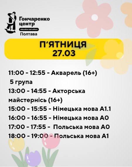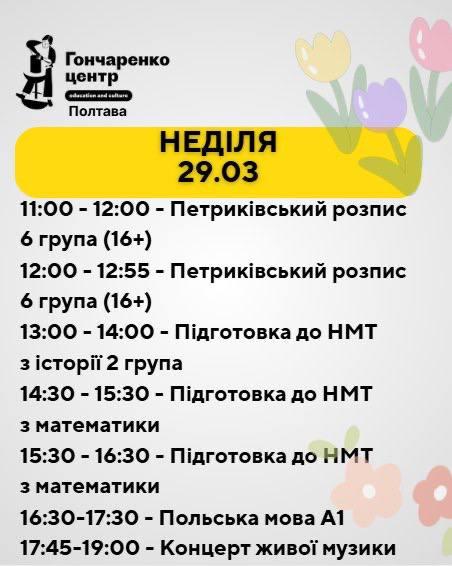 Гончаренко центр Полтава запрошує на активності цього тижня