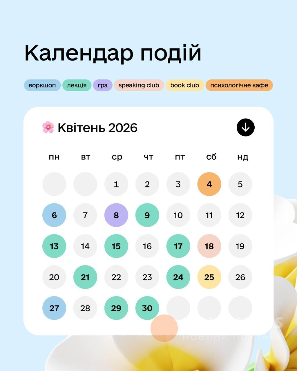 Події також будуть корисними для власників мікро- та малого бізнесу, фрилансерів, студентів, які цікавляться підприємництвом, а також для тих, хто прагне розвивати професійні навички та особистий бренд. У програмі квітня — лекції, воркшопи, інтелектуальні зустрічі та тематичні клуби. Участь у всіх заходах — безоплатна, за попередньою реєстрацією.