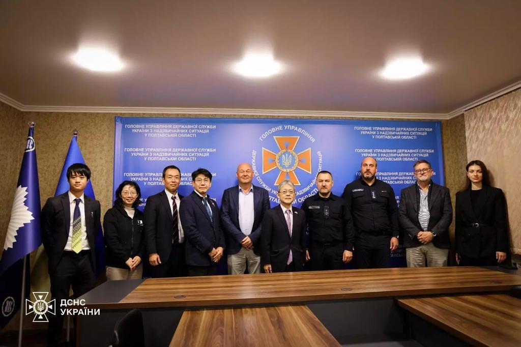 З робочим візитом Полтавський гарнізон відвідали Надзвичайний і Повноважний Посол Японії в Україні Масаші Накаґоме, постійний представник ПРООН в Україні Ауке Лотсма, перший заступник Голови ДСНС Віталій Миронюк та представники Японського агентства міжнародного співробітництва (JICA). Міжнародні партнери передали для обслуговування й ремонту машин механізованого розмінування партію запасних частин та обговорили з керівництвом ДСНС подальші кроки для розвитку протимінної діяльності.