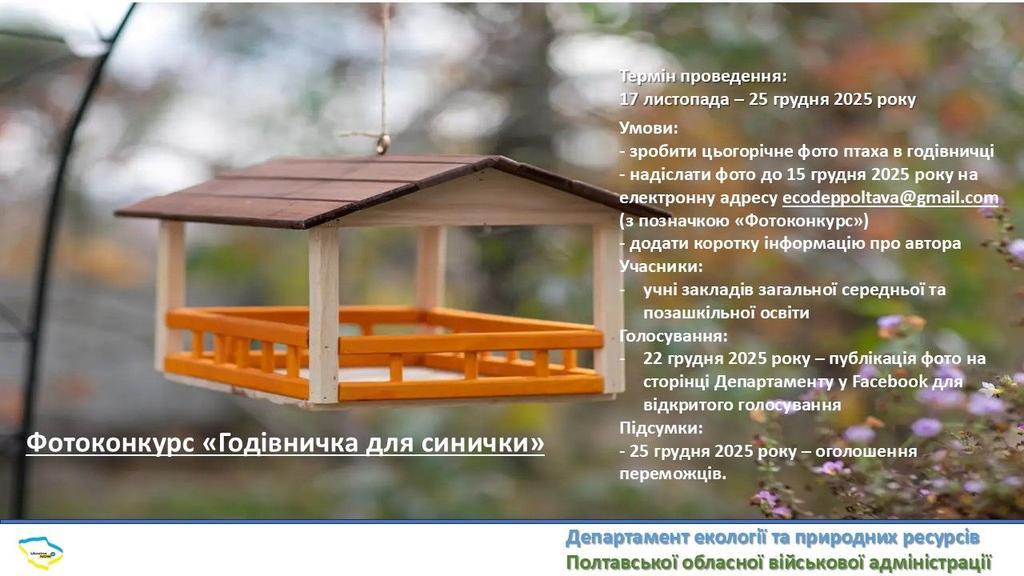Конкурс триватиме з 17 листопада до 25 грудня 2025 року. До участі запрошують учнів загальної середньої та позашкільної освіти. Головна умова - цьогорічне фото птаха в годівничці.