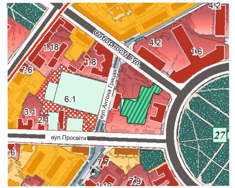 Наразі ця територія, обмежена вулицями Соборності, Антона Грицая та Просвіти, перебуває у занедбаному стані.