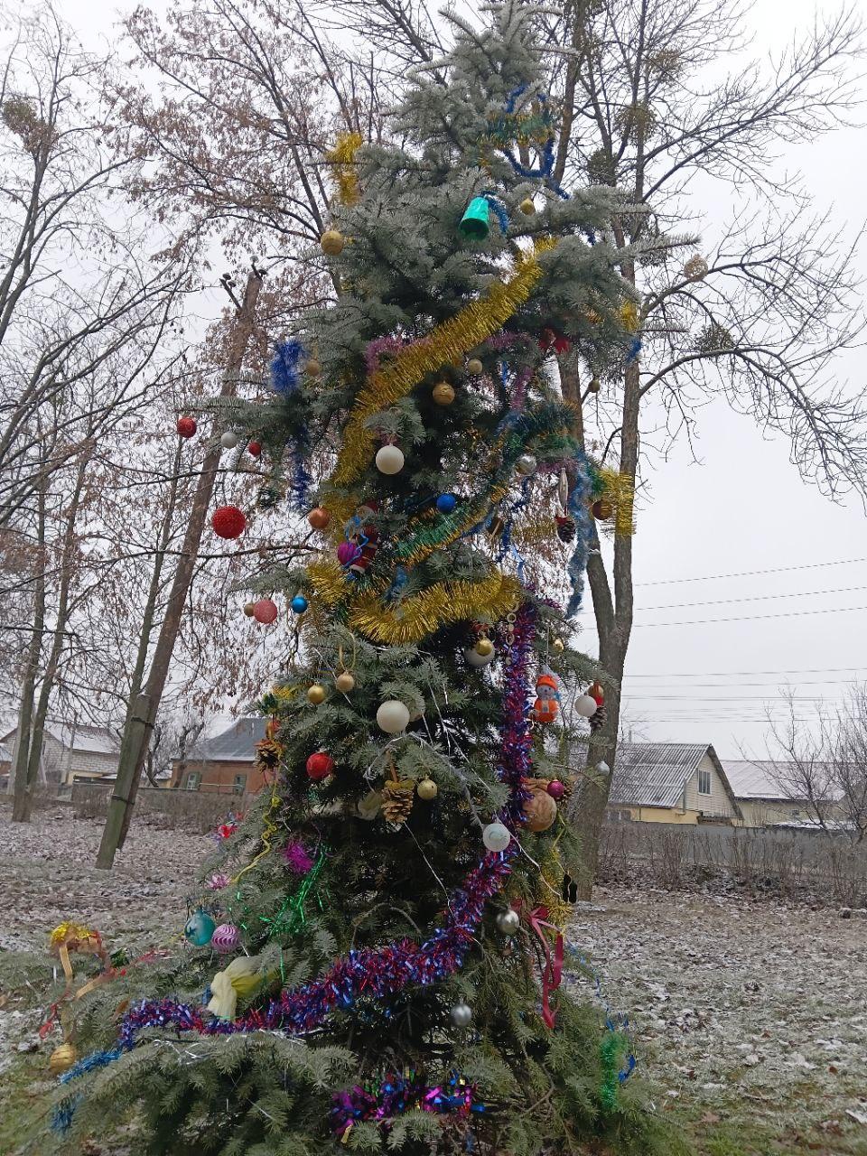 Ми не знайшли ялинку мікрорайону «Садового», наприклад, зате, в коментарях одного телеграм-канала користувач поділився фотографією ялинки у Розсошенцях.