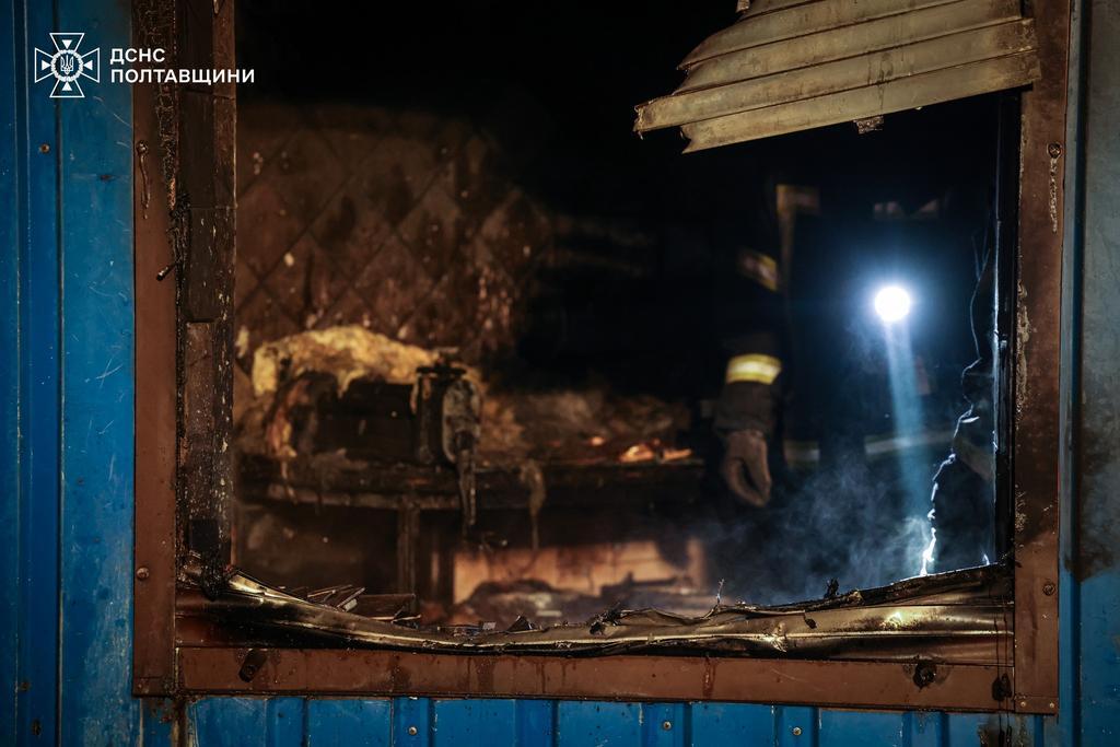 У Полтаві рятувальники ліквідували пожежу торгівельного павільйону в центральній частині міста.