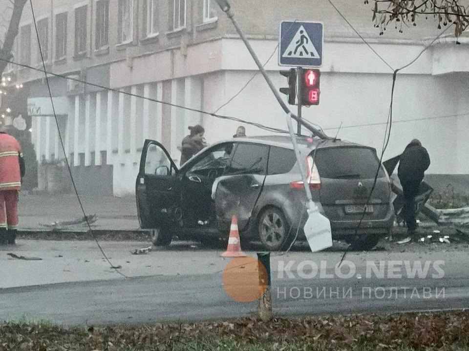Внаслідок ДТП на перехресті вулиць Козака — Монастирської пошкоджено опору разом із ліхтарями та світлофором.