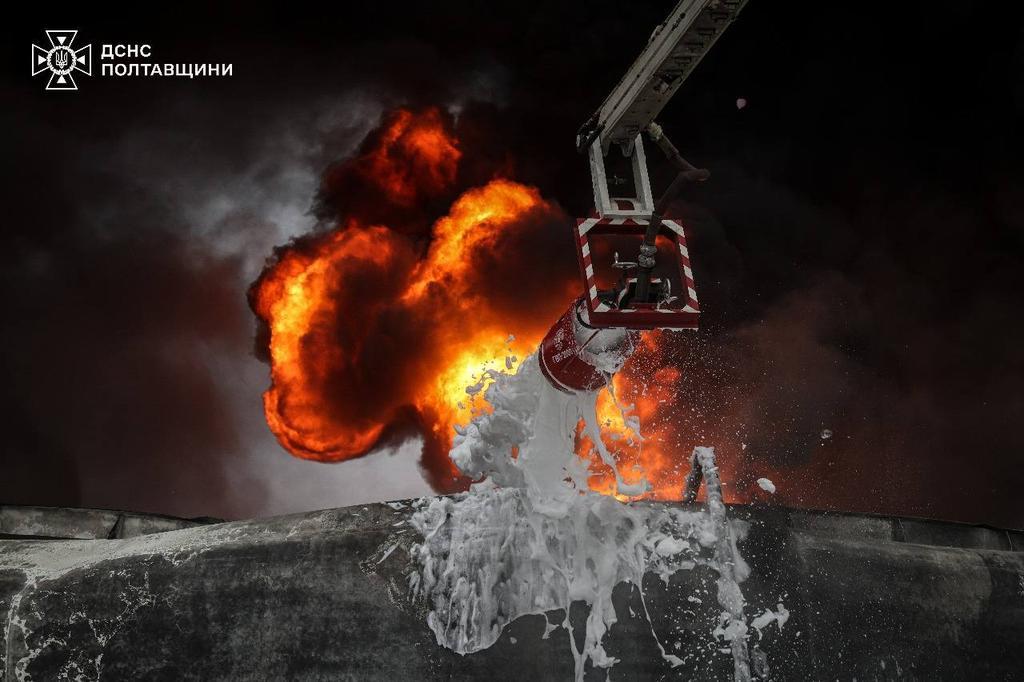 Внаслідок нічної атаки росіян по об’єктах енергетики у Кременчуцькому районі виникли масштабні пожежі.