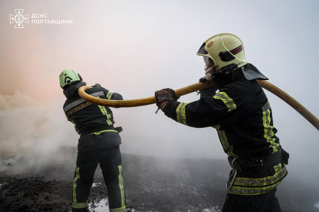 В прес-службі ГУ ДСНС Полтавщини повідомили, що через прямі влучання та падіння уламків загоряння охопили кілька об’єктів. Частину осередків вдалося ліквідувати упродовж ночі, а зранку вогнеборці загасили й решту пожеж.