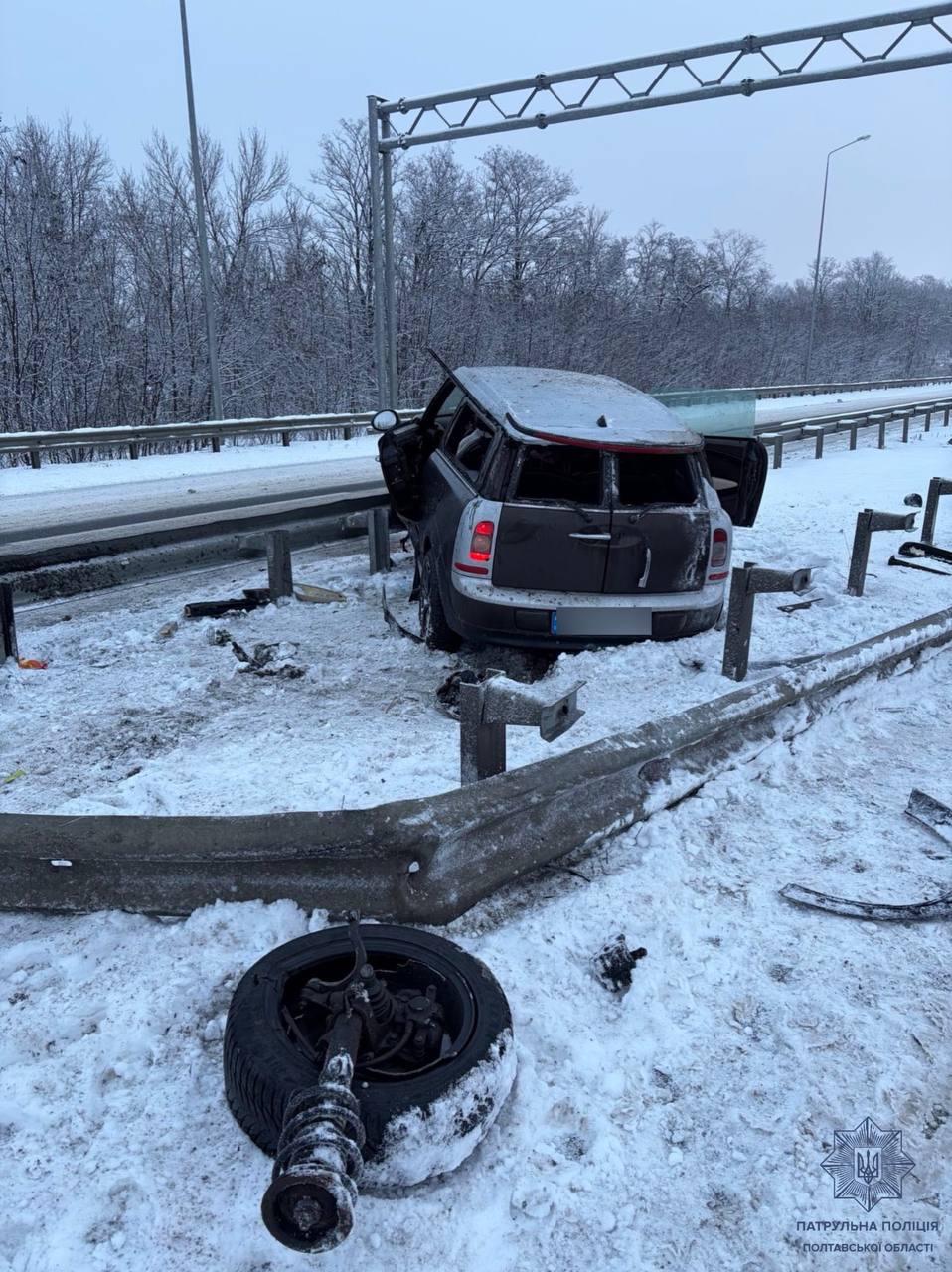 Під Полтавою водій не впорався з керуванням і врізався у відбійник