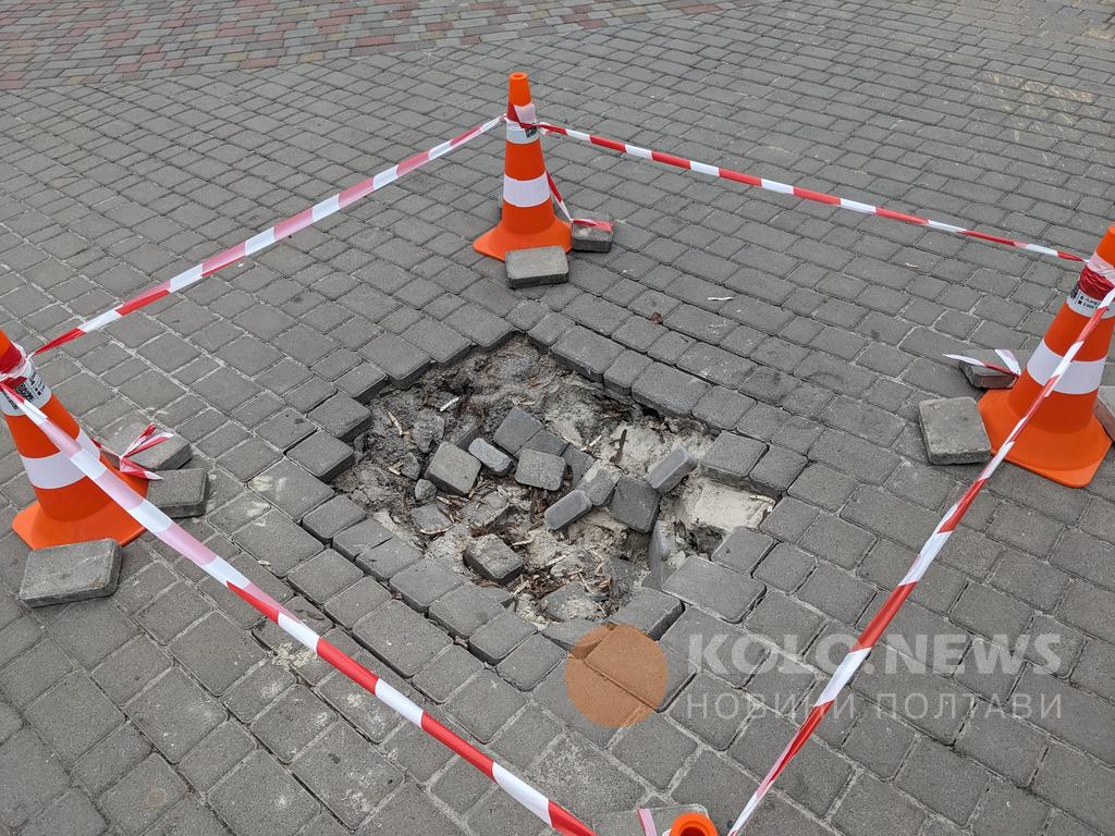Поблизу монумента Івану Мазепі виявили невелике просідання ґрунту. За попередніми оцінками, причина може бути пов’язана з підземними спорудами, що проходять у центральній частині міста, зокрема під цією ділянкою. Про це повідомили у пресслужбі Полтавської міськради.