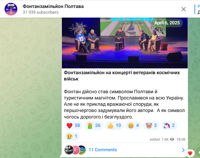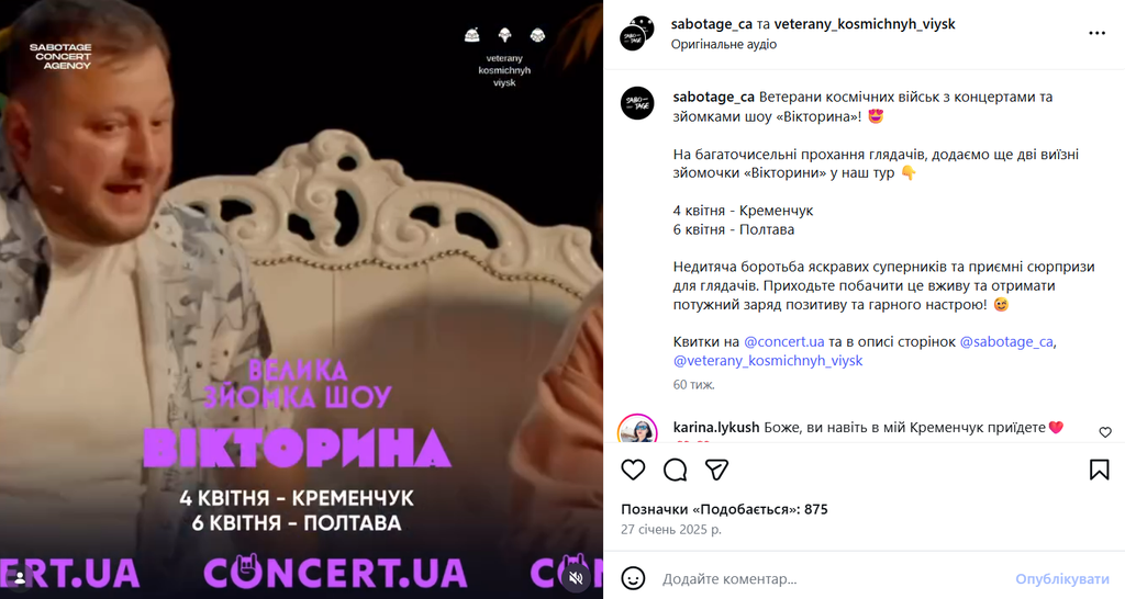 Додамо, це не перший подібний випадок. Минулого квітня у Полтаві відбувся гумористичний захід від команди «ВКВ» попри те, в громаді офіційно було оголошено жалобу за загиблими дітьми, внаслідок російського удару, в Кривому Розі.