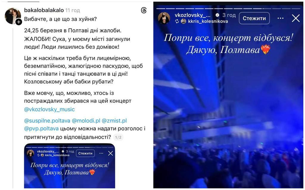 Цього ж вечора у палаці дозвілля «Листопад» відбувся концерт Віталія Козловського, на що багато полтавців відреагували негативно, назвавши це «танцями на кістках».