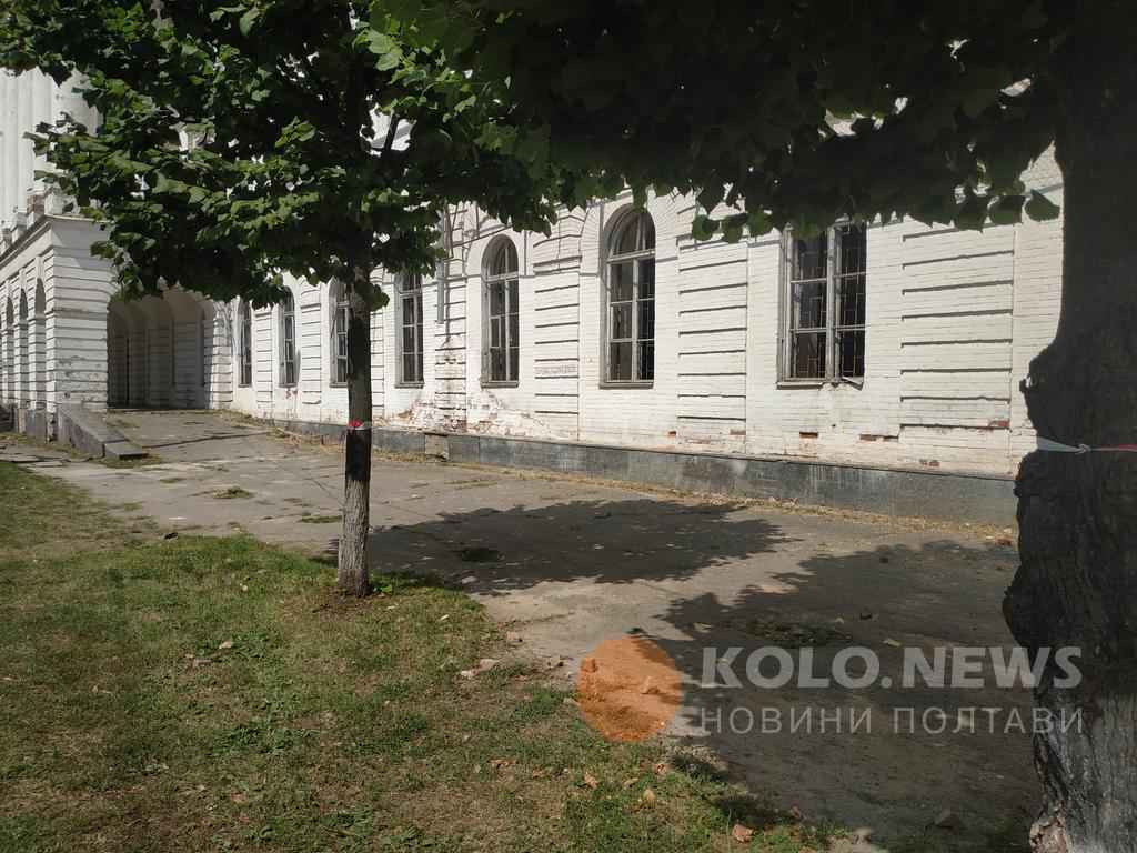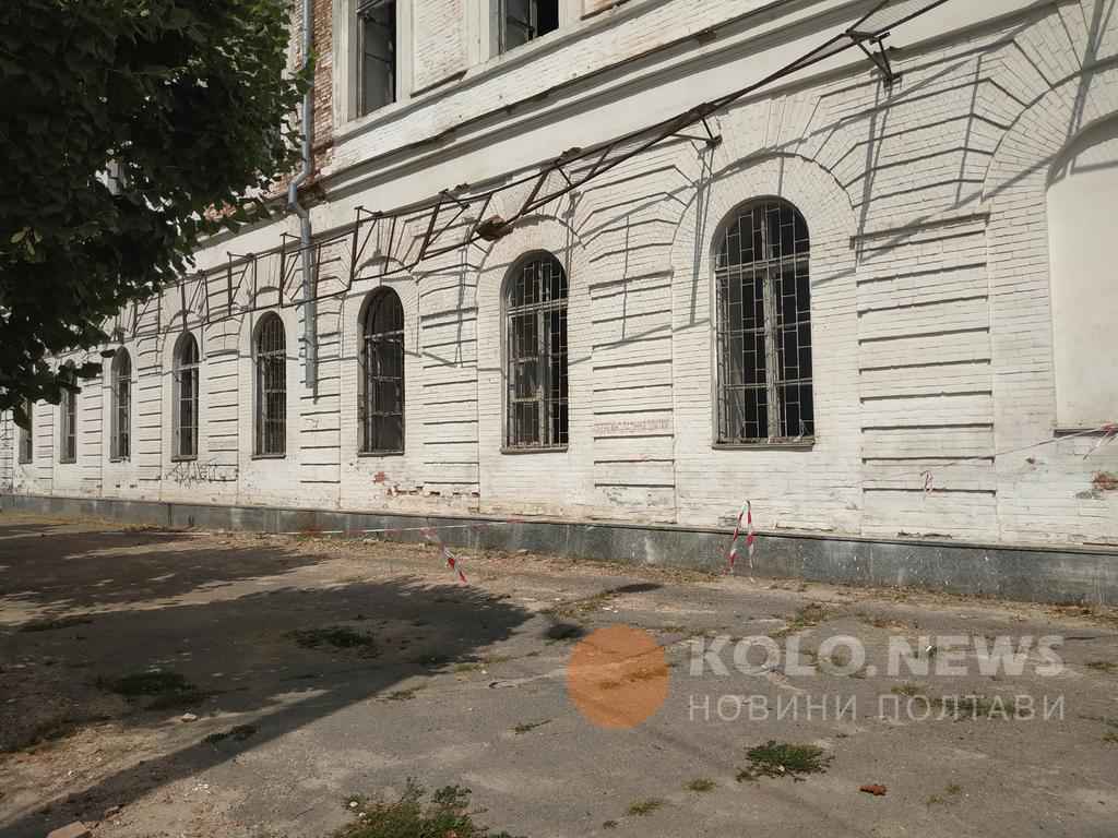 Частину будівлі кадетського корпусу у Полтаві огородили попереджувальною стрічкою.