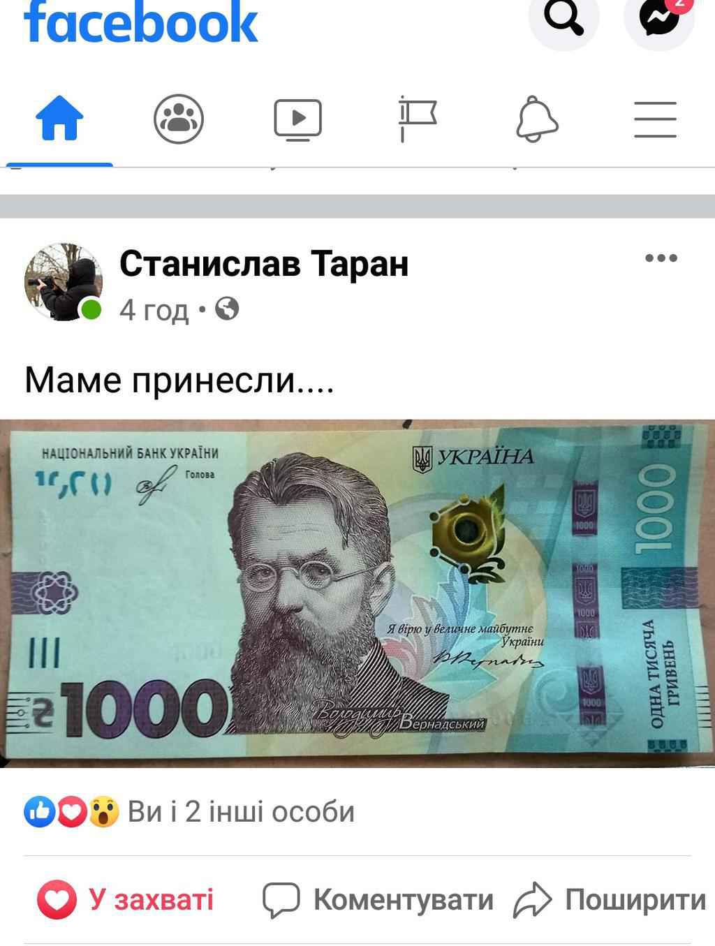 – Пошта у село приїздить 2 рази на тиждень. Моїй мамі – 92 роки. Цього місяця поштарка до неї приїздила на велосипеді 4 рази. Спочатку привезли пенсію – 2600. Потім, 21 квітня, – 500 гривень тим, кому за 80 років, потім ще раз приїхала – 570 гривень тим, хто у війну учасник трудового фронту, і 24 квітня привезла обіцяну тисячу, – говорить Ірина Микитенко з Миргородщини.