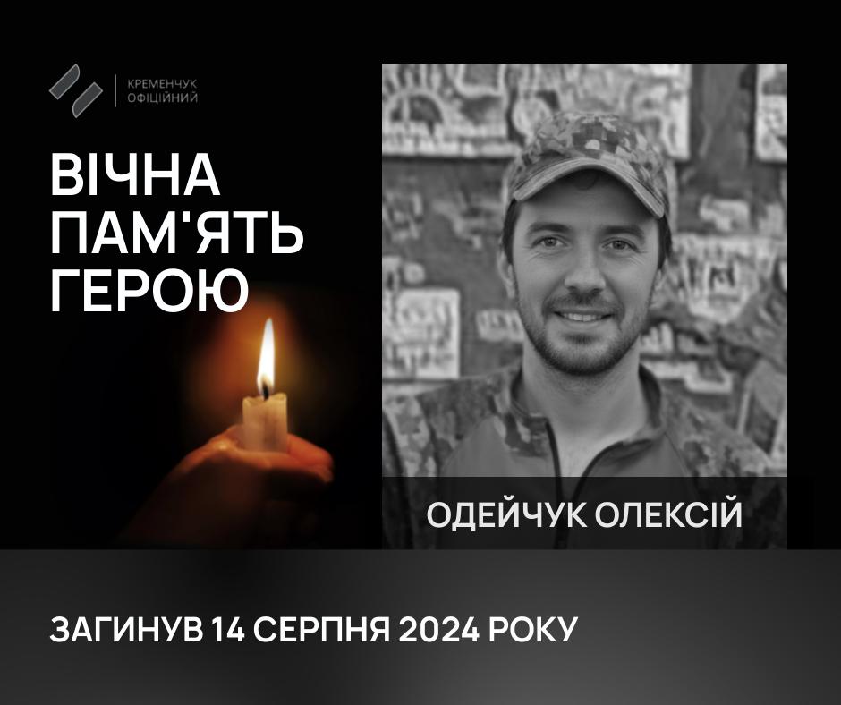 3 жовтня, Кременчук попрощався із солдатом Одейчуком Олексієм Михайловичем. У 39-річного воїна залишились мати, батько й син.