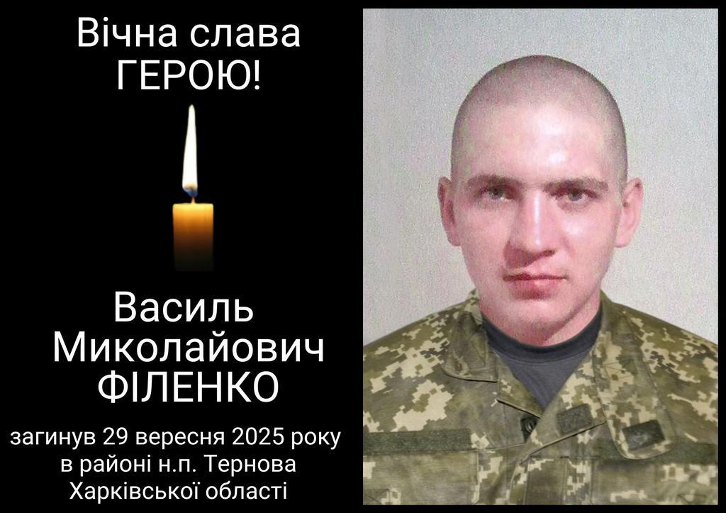 Житель Козельщинської громади Василь Філенко, стрілець спеціалізованої роти «Шквал», захищаючи рідну землю, загинув від артилерійського обстрілу ворога поблизу н.п. Тернова на Харківщині.