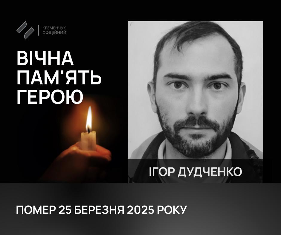 30 жовтня, Кременчук попрощався із солдатом Дудченком Ігорем Олеговичем. У 32-річного воїна залишилась мати.