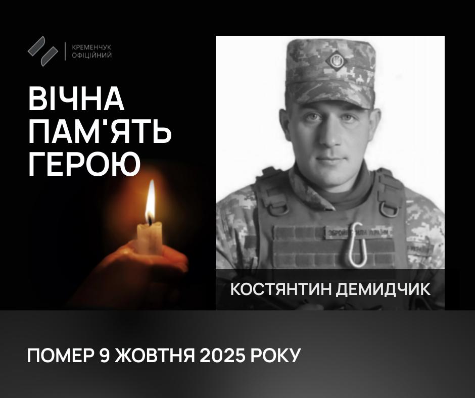 29 жовтня, Кременчук попрощався із солдатом Демидчиком Костянтином Вікторовичем. У 44-річного воїна залишились мати та син.