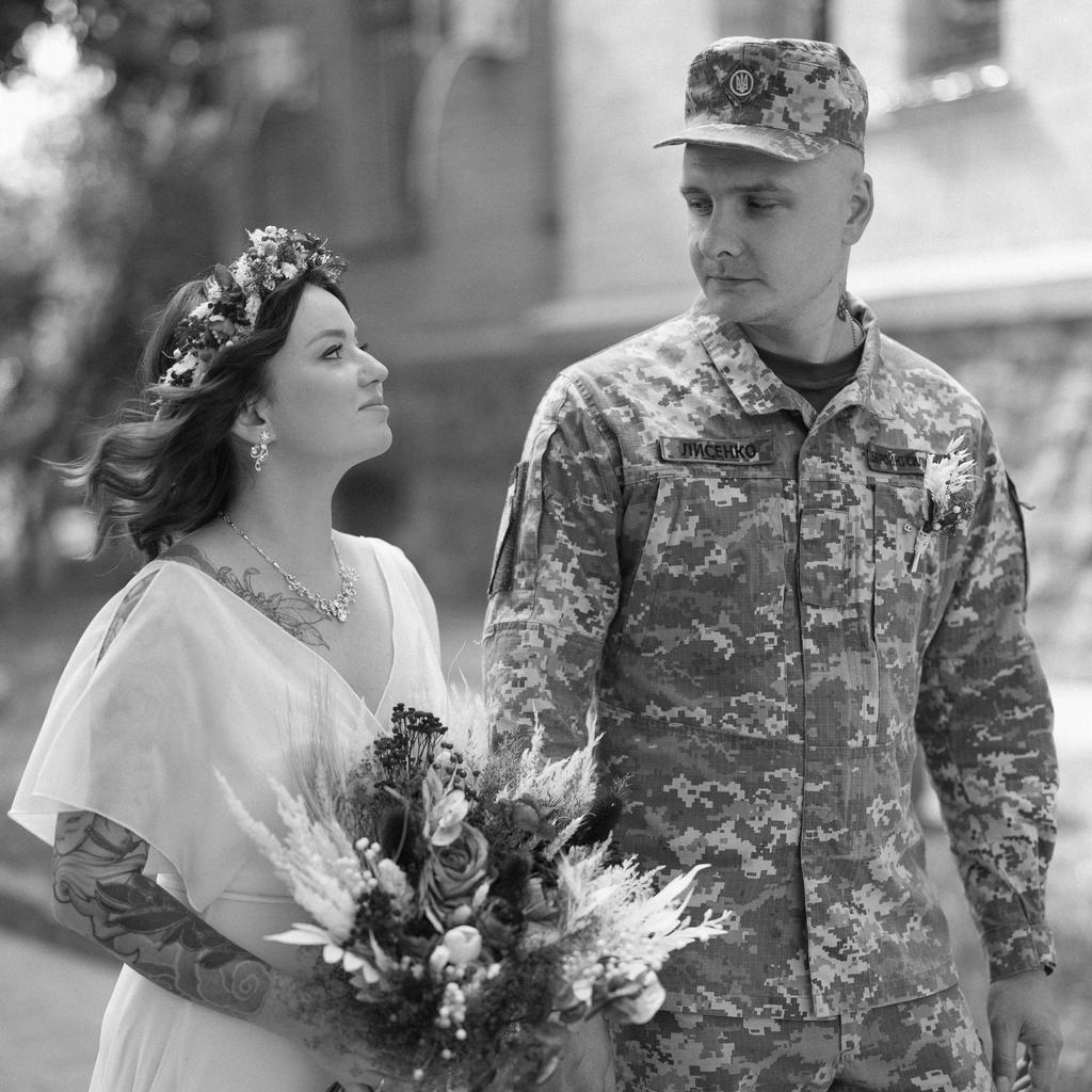 З роками вони їздили країною на мотоциклах, пили пиво в улюбленому пабі, він передивився з нею Гаррі Поттера і Гру Престолів, вона з ним Рік і Морті та Південний парк. Сварились, били посуд, мирились. Він дарував їй квіти, вона готувала йому смачні вечері. А потім вони прокинулись від повідомлення про вторгнення, і за годину він закинув баул, у формі і зі зброєю покинув дім. Вона плакала у телефон, боячись новин. Він пізнав війну, небезпеку, смерть і після поранення повідомив їй у госпіталі: "ти уся моя сім'я, окрім тебе в мене більше нікого немає, я не можу дати тобі ідеального, вартого тебе весілля, та я хочу щоб ти стала моєю дружиною". Вона тоді по справжньому злякалась, та, звісно, згодилась.