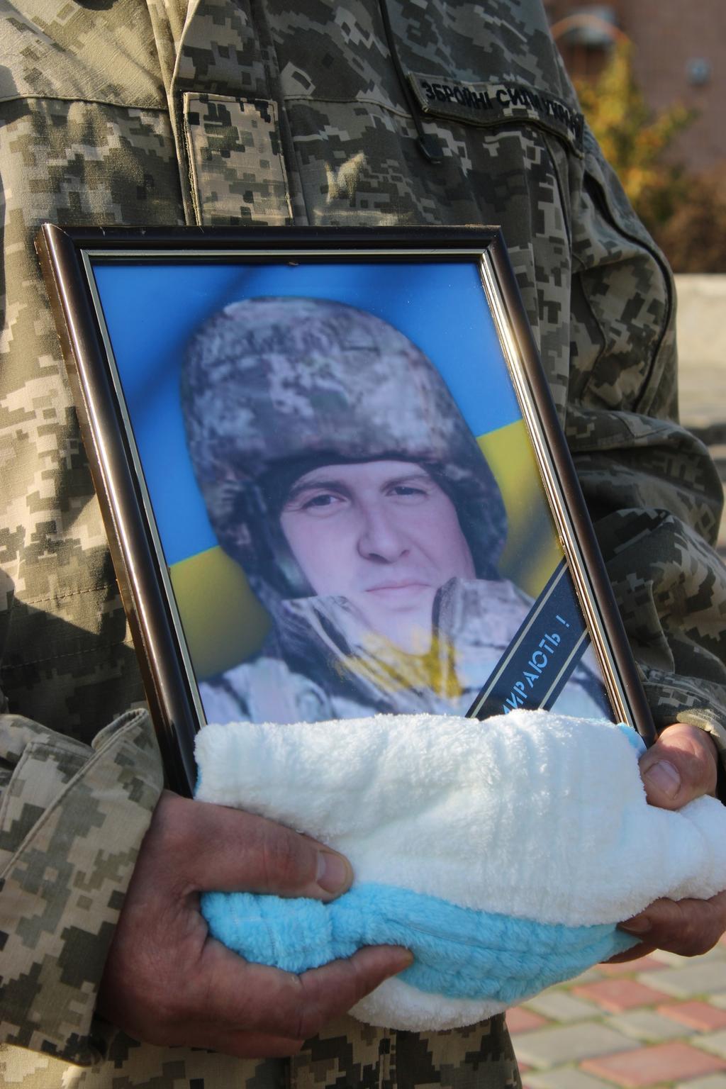 На центральній площі селища зібралися його рідні, друзі, побратими та небайдужі жителі, щоб разом схилити голови у скорботі та висловити вдячність Герою.