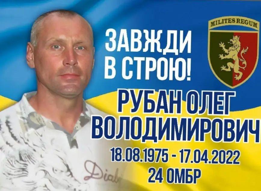 17 квітня 2022 року, виконуючи бойове завдання в місті Попасна Луганської області, Олег Рубан загинув.