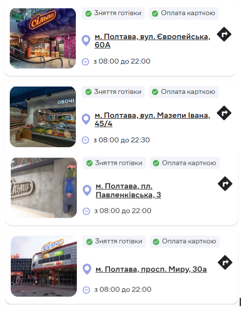 Перелік супермаркетів «Сільпо» у Полтаві: