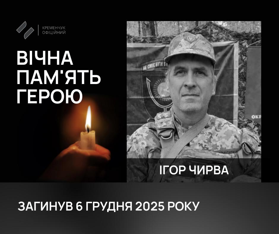 29 грудня, Кременчук попрощався з капітаном Чирвою Ігорем Миколайовичем. У 53-річного воїна залишились мати та батько.