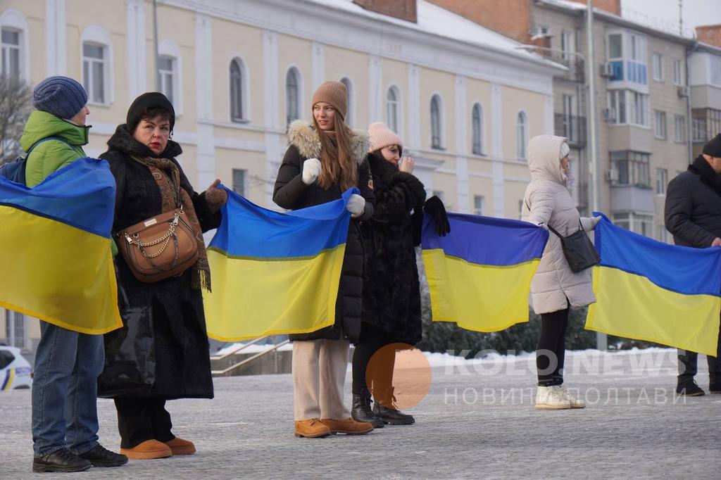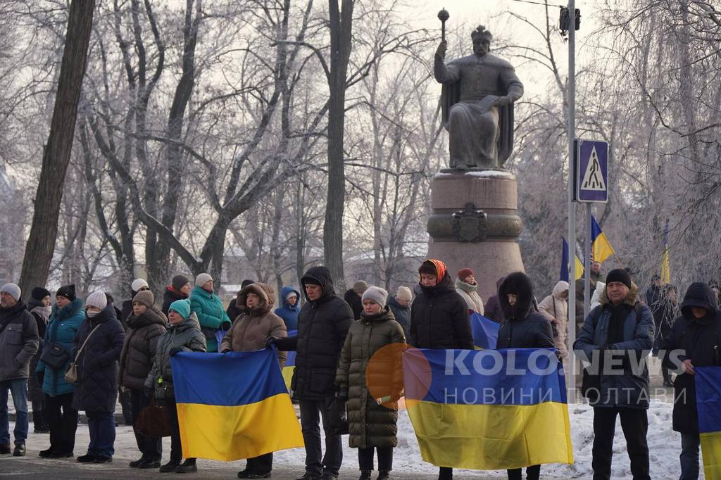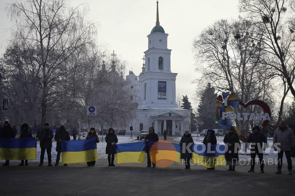 Сьогодні, 21 січня, у центрі Полтави сотні мешканців долучилися до створення живого ланцюга на честь Дня Соборності.