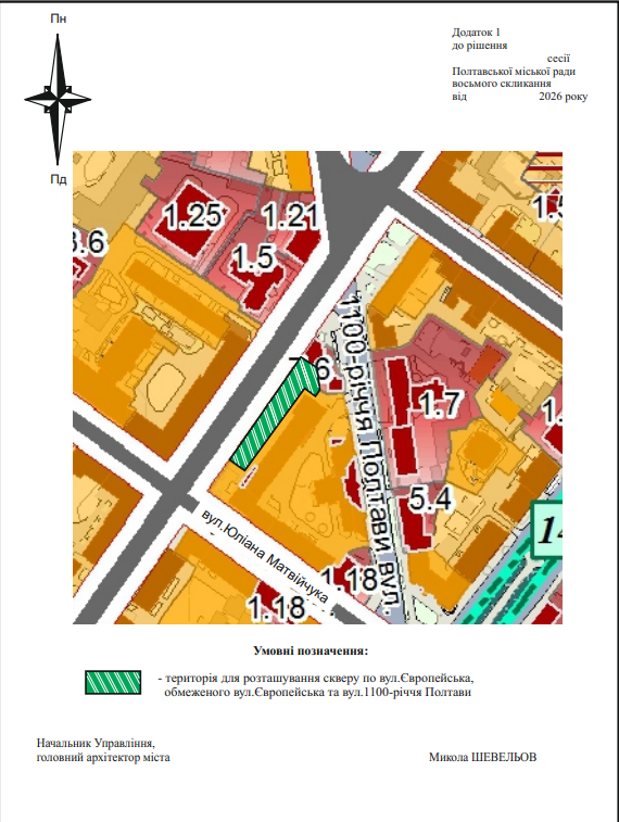 До переліку зелених зон Полтави внесли сквер на вулиці Європейській, між вулицями Європейська та 1100-річчя Полтави.