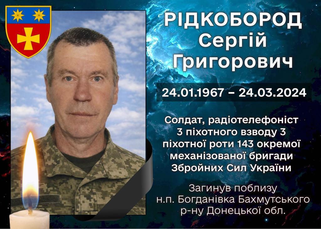 Після двох років невідомості додому «на щиті» повернувся житель села Вишняки Хорольської громади, мужній Захисник України – Рідкобород Сергій Григорович.