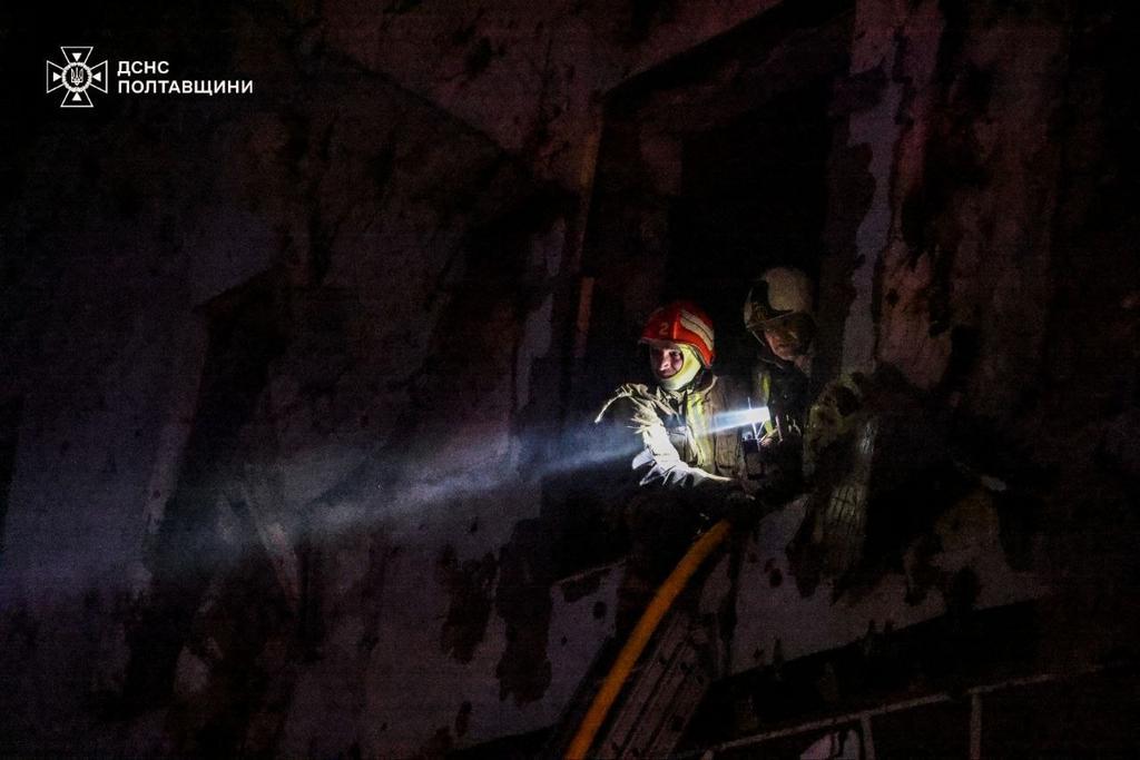 ДСНС показала фото з ліквідації наслідків нічного обстрілу Полтави