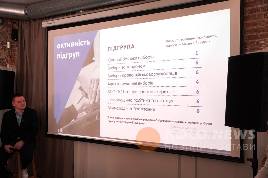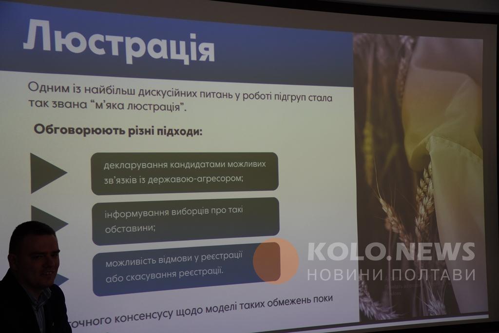 У Полтаві відбулася публічна дискусія «Законодавство про перші повоєнні вибори: політико-правова рамка», під час якої презентували результати, напрацьовані в межах діяльності тематичних підгруп великої робочої групи з підготовки повоєнного виборчого законодавства.