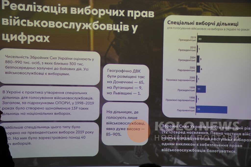 Під час заходу присутні дискутували щодо забезпечення виборчих прав військовослужбовців та українців, які перебувають за кордоном, а також щодо перспективи онлайн-голосування.