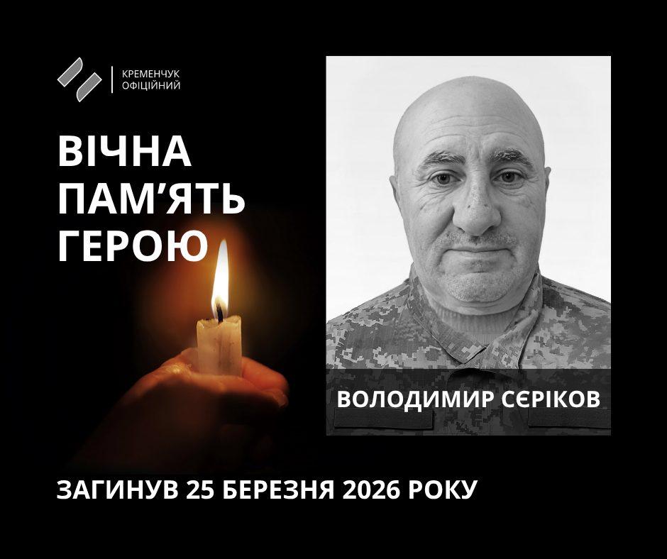 Загинув Володимир Сєріков 25 березня 2026 року на Запоріжжі, виконуючи бойове завдання по захисту України, її суверенності та територіальної цілісності, відданий Військовій присязі та Українському народові.