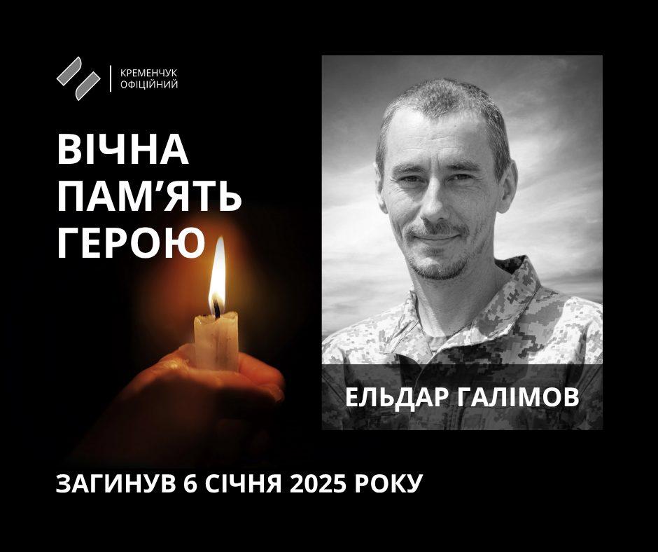 Загинув Ельдар Галімов 6 січня 2025 року на курщині в рф, виконуючи бойове завдання по захисту України, її суверенності та територіальної цілісності, відданий Військовій присязі та Українському народові.