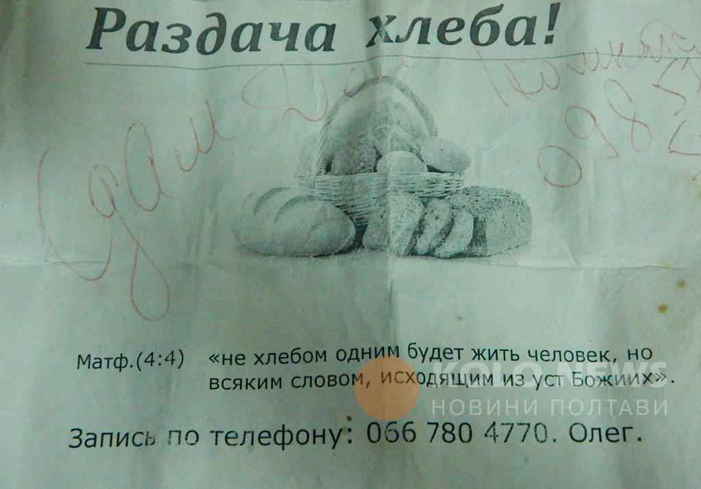 Нещодавно у житлових районах Полтави активно почали розповсюджувати оголошення про те, що у місті безкоштовно роздають хліб.