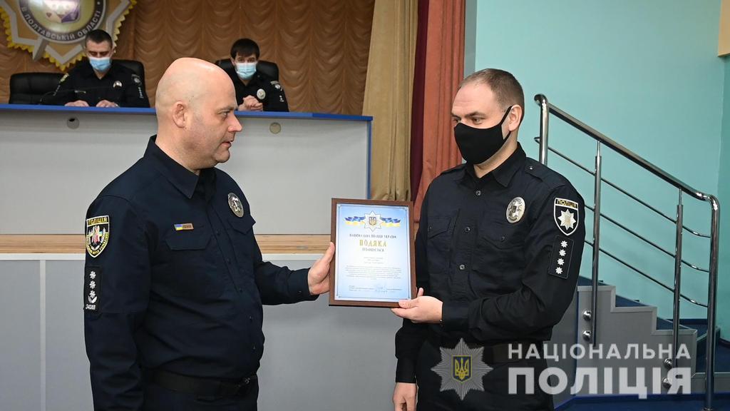 Подякою МВС заохочені троє працівників поліції: майор поліції Інна Бузало, дізнавач відділу дізнання поліції Полтавщини; майор поліції Владислав Тарчуков, старший оперуповноважений в особливо важливих справах управління карного розшуку поліції Полтавщини; старший лейтенант поліції Євгеній Дудка, начальник відділення слідчого відділу Полтавського районного управління поліції.