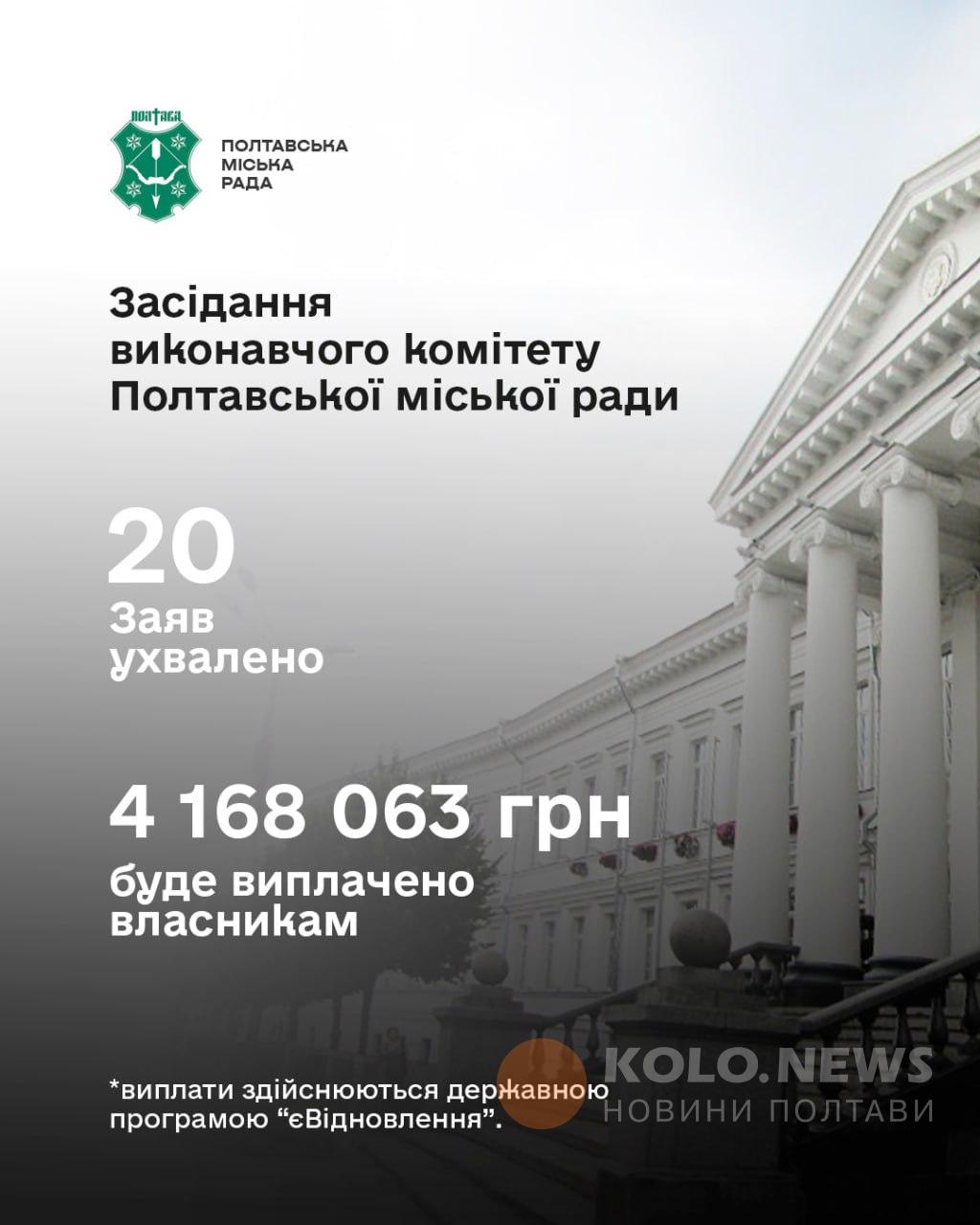 Ще 20 родин Полтавської громади отримають компенсацію в межах державної програми «єВідновлення» – повідомляє Катерина Ямщикова, секретар міської ради, тво міського голови Полтави: