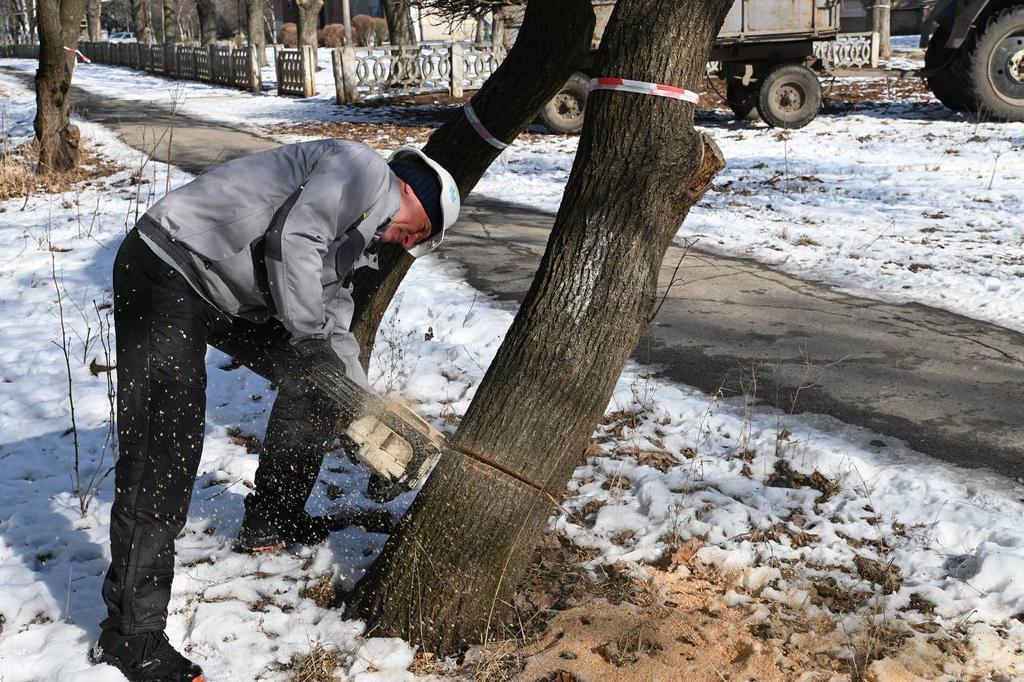 Поки люди фарбують і прибирають, чиновник працює «на камеру» — роздає морозиво. А у сусідньому дворі, найняті підлітки пиляють гілки. Вони самі зізналися, що отримують за цю роботу по кілька сотень гривень.