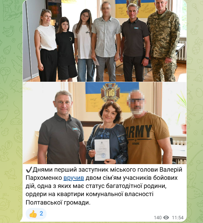 З цікавого, зять Валерія Пархоменка, який є приватним підприємцем, у 2024 році виграв аукціон на приватизацію нежитлових приміщень площею 113,6 кв.м, за адресою: вулиця Мазепи Івана, будинок 23а, у Полтаві. Це майно він отримав за 527 тисяч гривень.