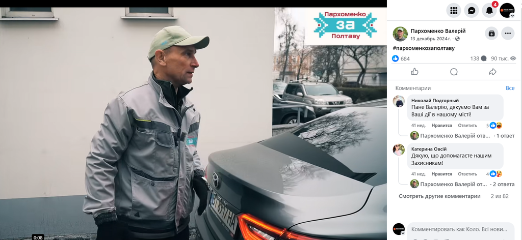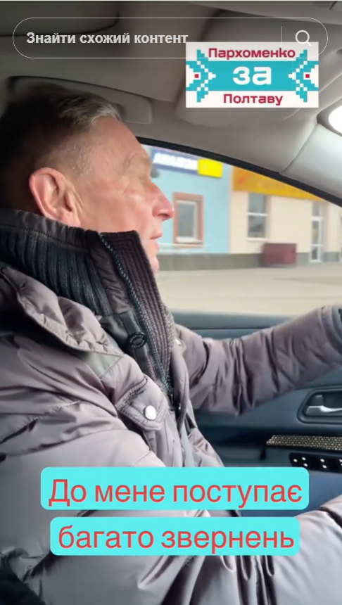 Отже, щоб відвезти одну запчастину і зняти ролик про те, як він допомагає ЗСУ, не забувши одягнути свій мерч та прикріпити логотип «Пархоменко за Полтаву», посадовець використав в тому числі і службове авто, а отже і водія, і бензин.