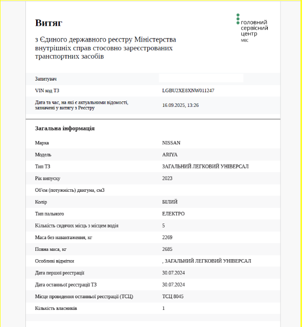 Авто було придбане влітку 2024 року. Це була первинна реєстрація нового транспортного засобу, придбаного в торговельній організації, який ввезено з-за кордону. І як нам розповіли працівники міськради, як мінімум, з вересня 2024 року він почав його паркувати та заряджати у дворі міськради.