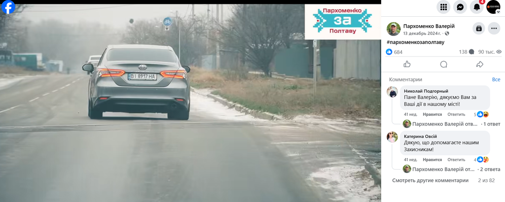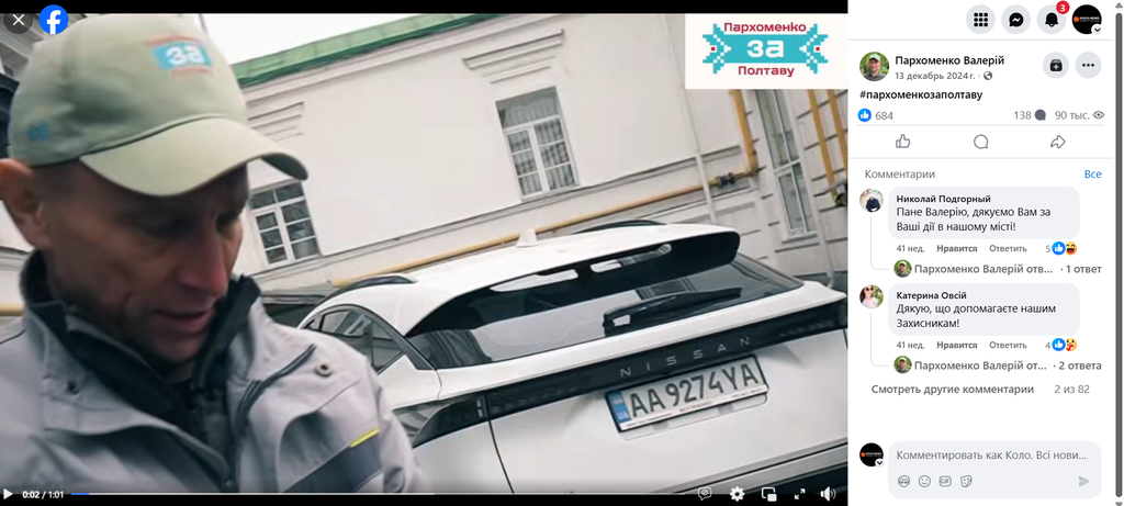 У його відео, яке вийшло на його сторінці у фейсбуці 13 грудня 2024 року він самостійно показав це авто і, що він ним користується.