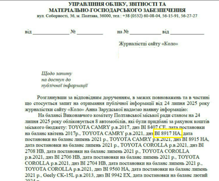 Якщо подивитися відео повністю, то можна побачити як посадовець двома автівками їде на СТО, де ремонтується авто для військових. Друге авто - службове, на балансі Управління обліку, звітності та матеріально-господарському забезпеченню.