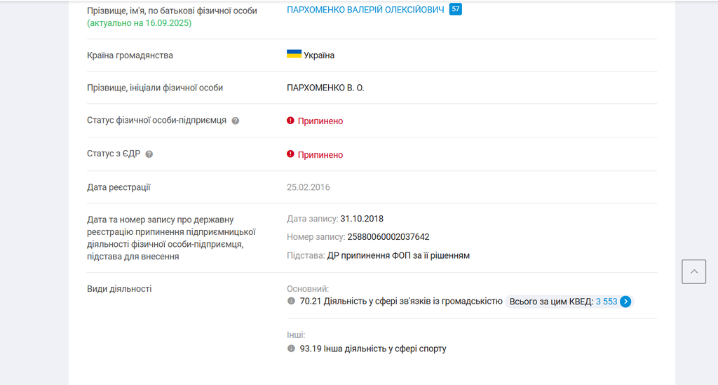 Читаючи про великі витрати чиновника на рекламу лише у Фейсбуці, а ще додамо рекламу в ЗМІ, толоки, подарунки бюджетникам, то в місяць вийде кругленька сума. Звідки ж гроші, спитаєте ви. Пархоменко з 2020 року завжди був на держслужбі. За даними YouControl, востаннє Валерій Пархоменко займався приватним підприємництвом у сфері зв'язків з громадськістю та спорту з 2016 по 2018 роки.