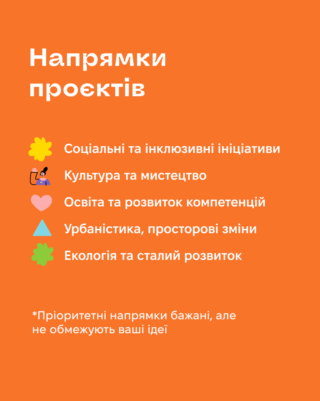 Пріоритетні напрямки бажані, але не обмежують ваші ідеї!